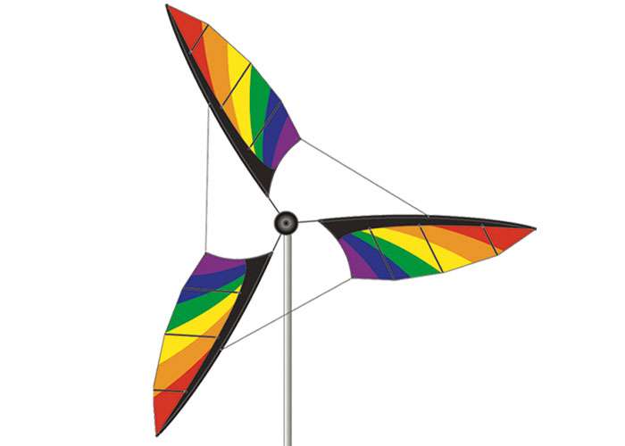 Reuzen windrad in stormvast constructieprincipe met rvs-as en telescoop - aluminium mast. Ideaal voor duurzame buitendecoratie in grote tuinen en parken. Met enige handigheid wordt dit je eigen kleine energieleverancier.
