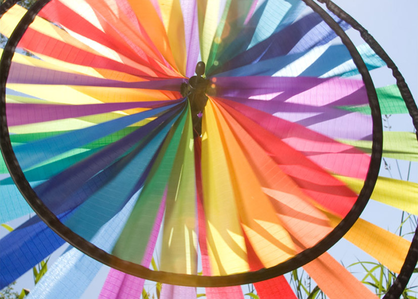 De Magic Wheel 44 Duett Rainbow van WindSpiration draait eindeloos en onvermoeibaar zijn rondjes in de wind. Een vrolijk en decoratief element in vele tuinen en op alle campings en balkons. Straalt in al zijn eenvoud.